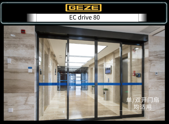 蓋澤ECdrive80平移門系統,可用于單道門或雙開門,門扇材料可挑選鋼化夾膠玻璃、中空玻璃窗、木質及其有外框玻璃移門,建筑門面整體解決方案——(咨詢深圳地區(qū)代理商-深圳市乙元興自動門有限公司)